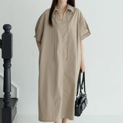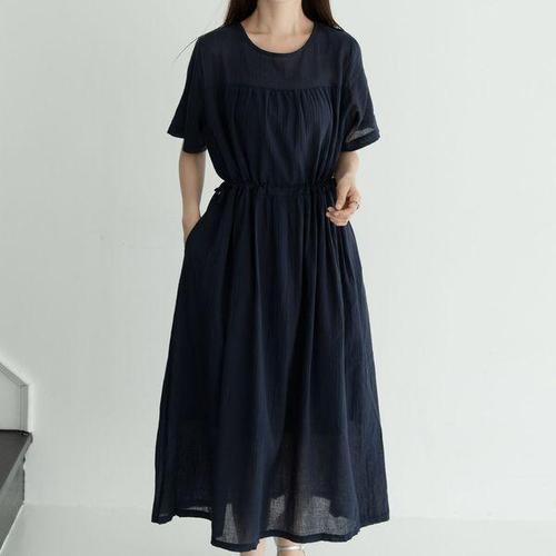 여성 여름 허리 스트링 무지 셔링 반팔 롱원피스 OP0533S 빅사이즈 루즈핏