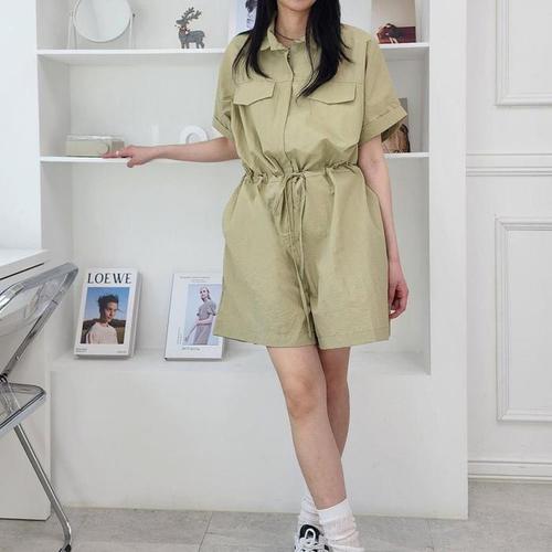 [시에로]SI2OPF521_볼륨반팔 제천 벨트 워싱 점프수트
