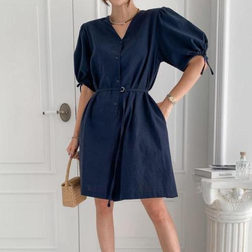 [다잇템]여자 반팔 퍼프 리본끈 벨티드 모던 점프수트