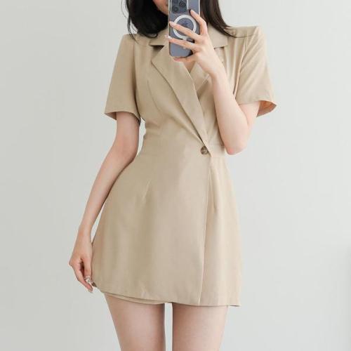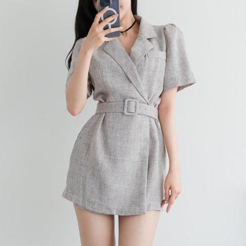 [옷자락]여자 반소매 재킷 혁대 SS 들러리룩 스타일 점프수트