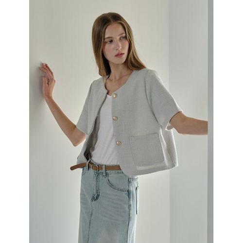 GGPX 클래식 라운드넥 트위드 반팔 자켓 (GQBJK002D)