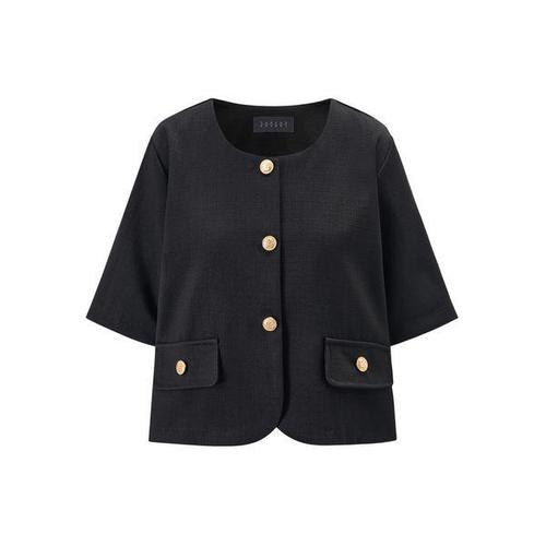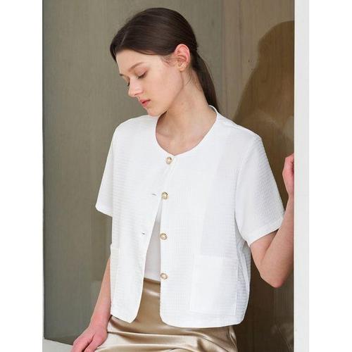 골드 버튼 트위드 라운드넥 반팔 자켓 (TY2JK002L0)