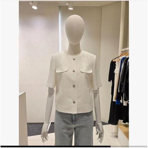 swygsqql 여성 반팔 트위드 자켓 키작녀 얇은 기질 패션 캐주얼 여름 자켓