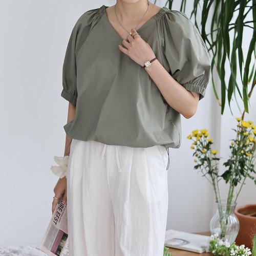 나바바 / NB2114 셔링 퍼프 브이넥 반팔 블라우스