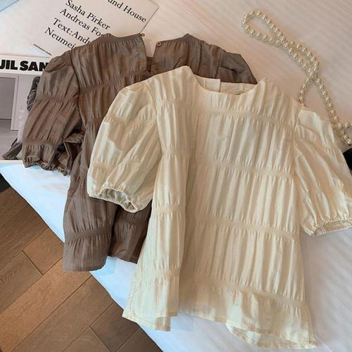여성 청순 시스루 퍼프 소매 반팔 카라 블라우스 셔츠(HSJ-WFCD5F6)
