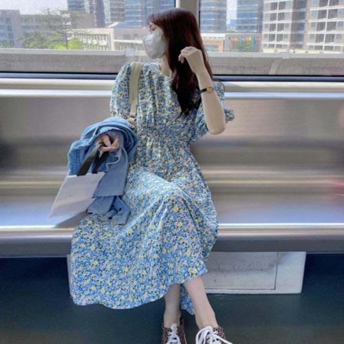 [셀럽하우스]플라워 KLID1692 인기 여성 반팔 롱원피스 감성 1P A라인 하이