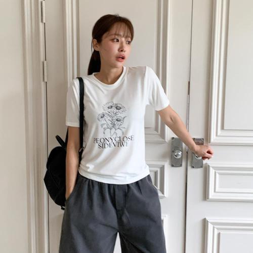 [1+1] [옷자락] 여성 코튼 꽃나염 프린팅 라운드넥 반팔 티셔츠