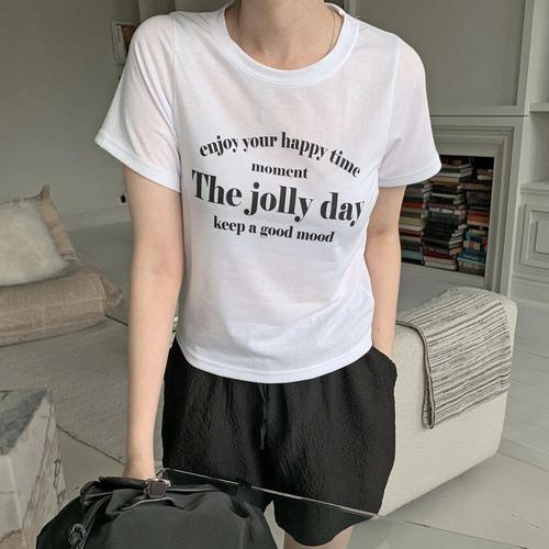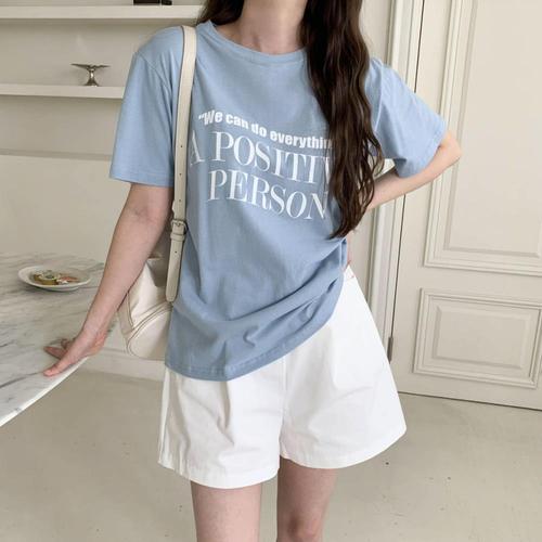 [1+1] [옷자락] 여자 데일리 레터링 레이온 스판 라운드넥 반팔티