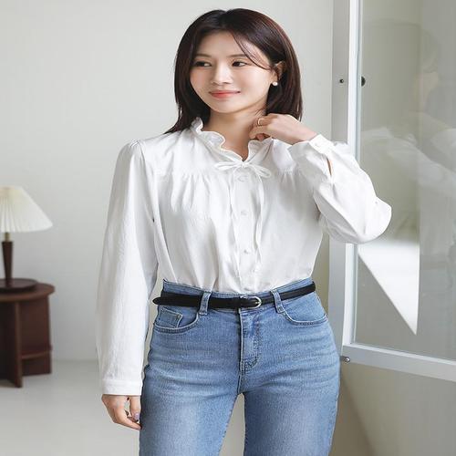 [WPBG]넥 프릴 리본 타이 스트랩 하이퀄 셔츠 블라우스_3color