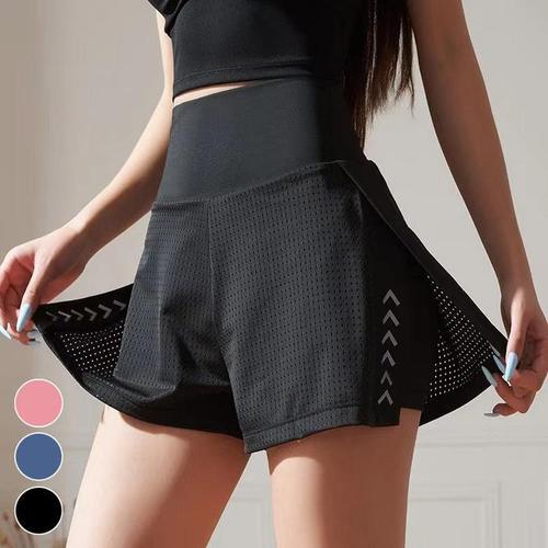 루즈핏 스포츠 반바지 여성용 하이웨이스트 이중 레이어 눈부심 방지 요가 피트니스 팬츠 러닝 속건 트레이닝 아우터웨어 핫