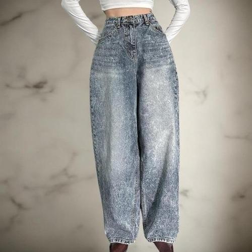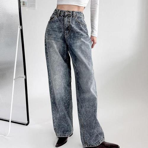 [옷자락]여자 스톤 워싱 루즈 와이드핏 가을 반하이 청바지