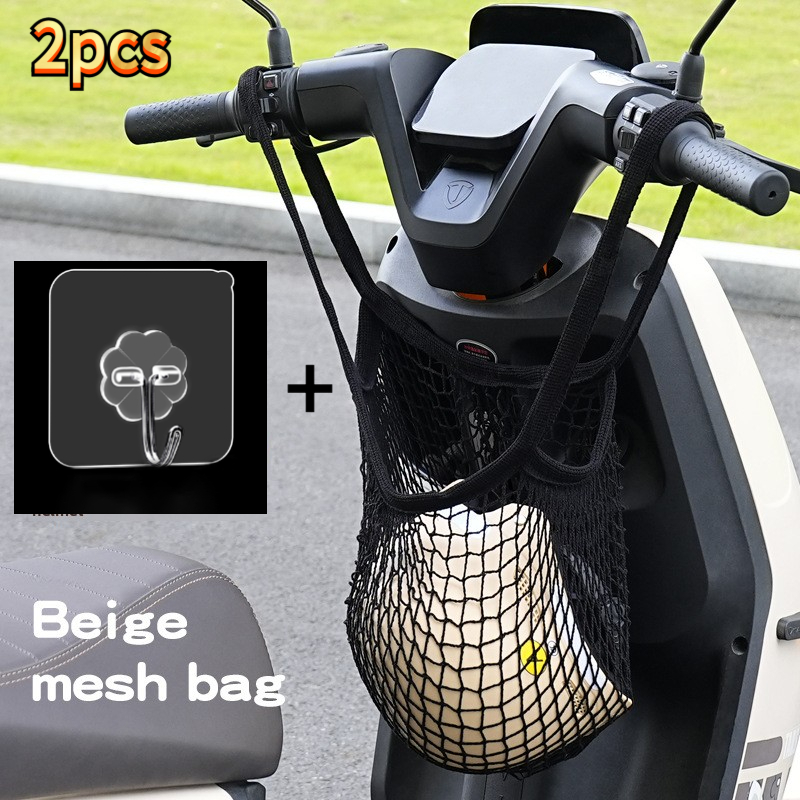 TEMU /전기 자동차용 전면 카고 바구니 & 후크 세트 2개 - 강력한 메시 디자인, 조절 가능한 스트랩, 내구성 좋은 폴리에스터, 헬멧 호환