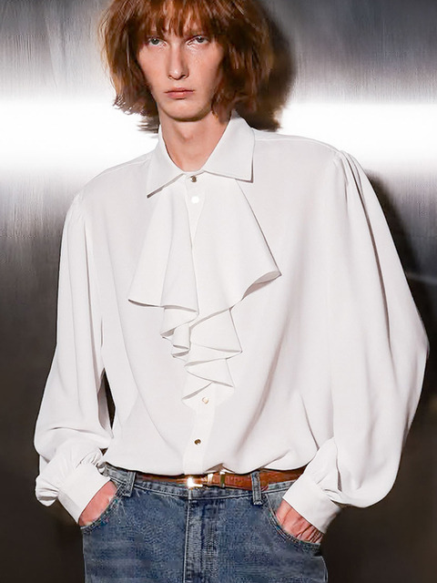 TEMU 2025년 남성 셔츠 추천, 신중하게 제작. 스타일리시한 플로럴 패치워크 포멀 셔츠로 봄/가을 오피스룩에 적합하며 빈티지 스타일을 연상시킵니다. 긴소매, 버튼 클로저가 포함되어 있습니다.|셔츠