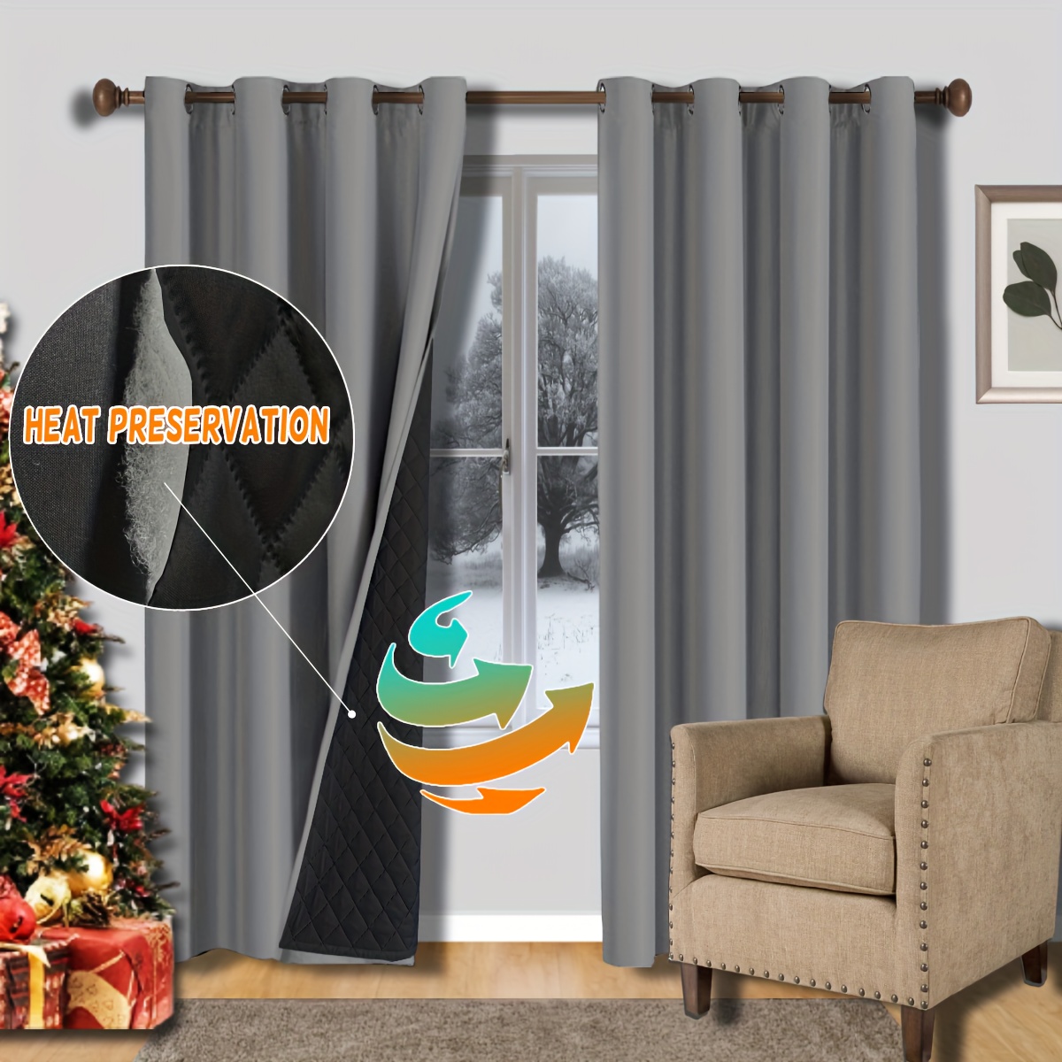 TEMU 2피스 커튼, 100% 차광 프라이버시, 단열 및 방음 기능, 라미네이트 빌리지, 손세탁 전용, 침실 및 거실용, 로드 포켓 포함, 심플하고 우아한 디자인