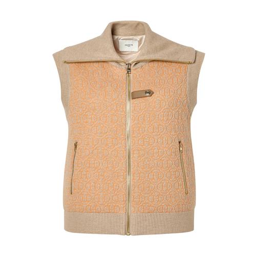 헤지스 골프 여성 베이지 여성 로고패턴 풀집 방풍 베스트 (HWSW4D714I2)