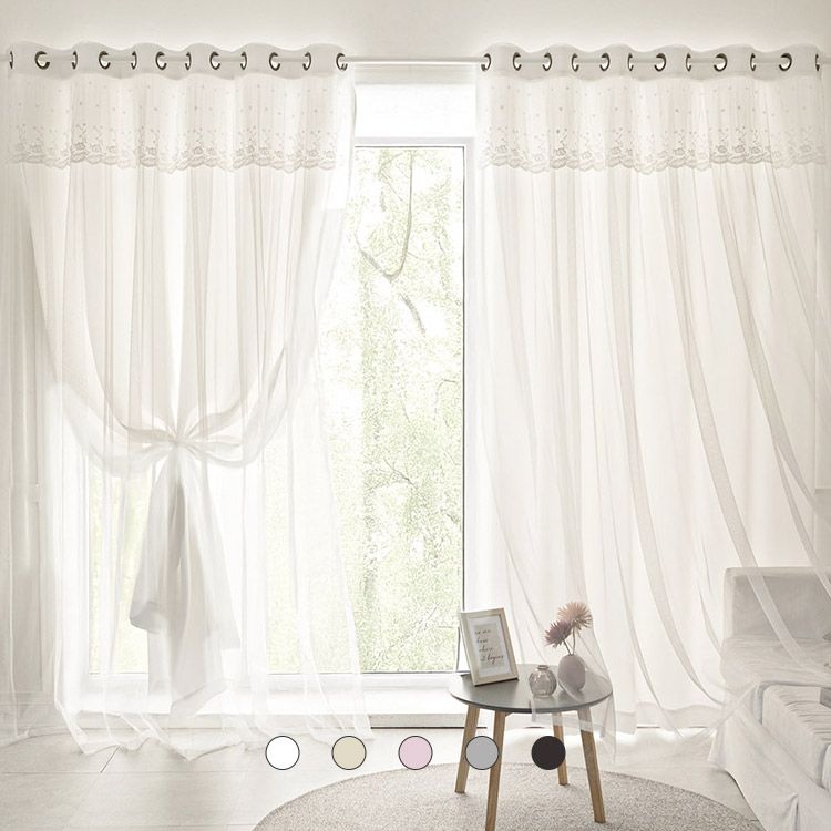 쁘리엘르 린넨 자수 레이스 나비주름 쉬폰 커튼 거실 안방 아이방 커텐