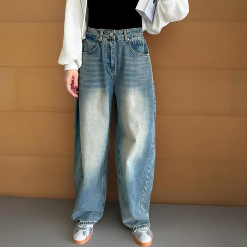 /신상오픈런 여성 벌룬 와이드 배기핏 가공 워싱 Y2K 청바지
