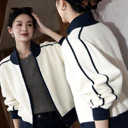 [의류] 여성 야구점퍼 배색 블루종 바시티 자켓