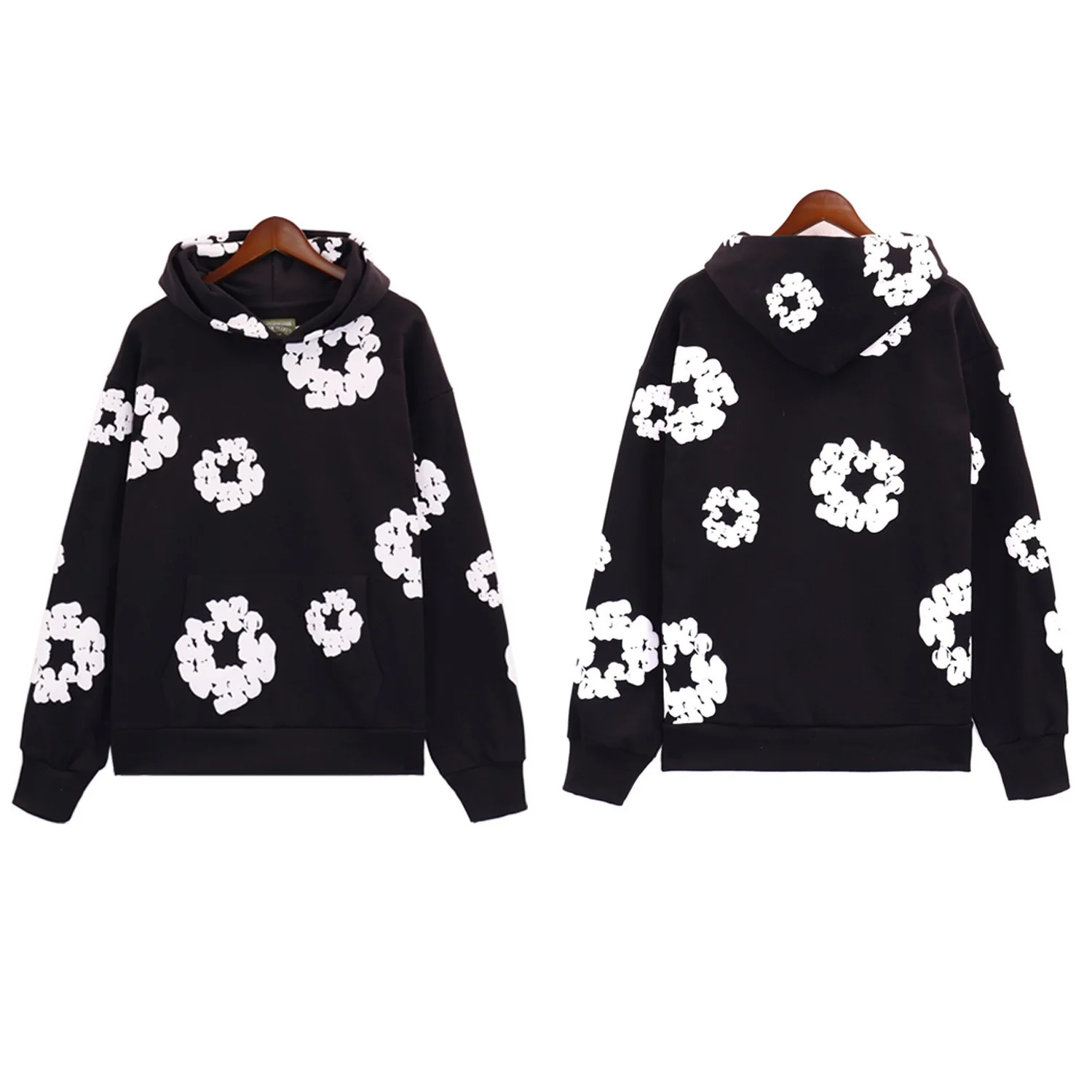 데님 티어스 후디 크로스보더 유럽 및 미국 인기 판매 코튼 폼 프린트 티어스 후디 남녀 공용 후디