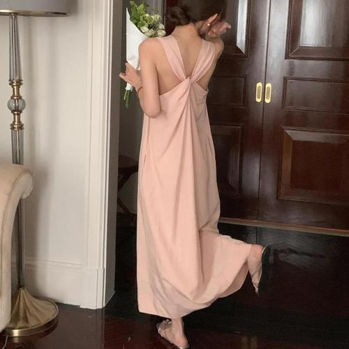 [오너클랜]인기상품 슬림핏 여름 니트 롱원피스 백트임 휴가지 백리스 휴가용 [WFLLN9K_260305]
