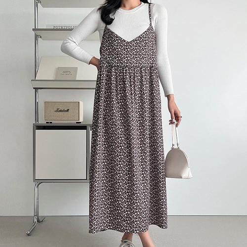 여성 백리스 꽃무늬 후레아 롱 문양 SS 원피스