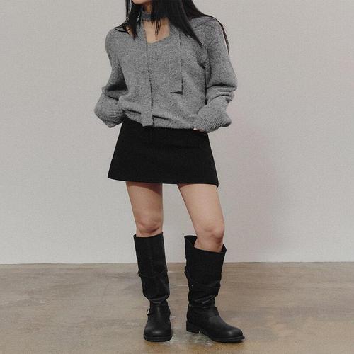 [KOLEAT]방한 니트 벌룬 리본 플레어 밴딩 미니스커트 [IVORY] 치마바지 ver.