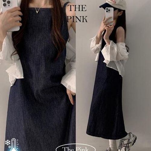 [본사] 데님 셔츠형 밴딩 원피스_SAOP04511BL