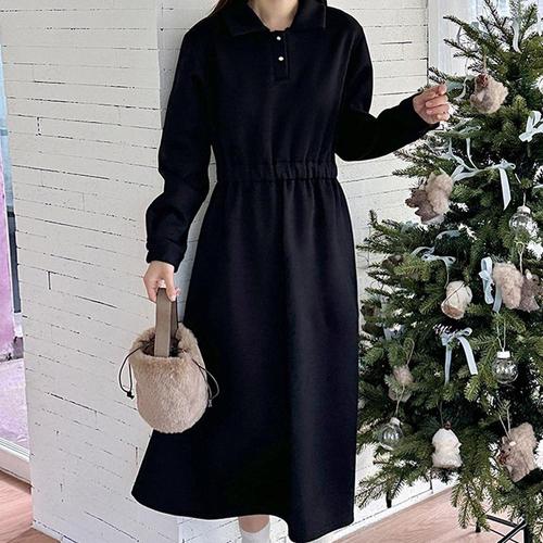소고 세이브존01 허리 밴딩 카라넥 롱 원피스 AJ2PA18