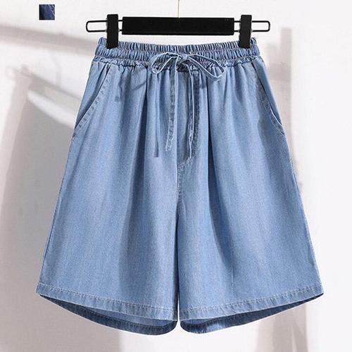 [다잇템_패션]여성 라이트블루 백밴딩 캐쥬얼 데님 반바지