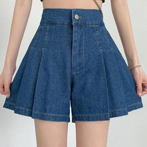 여성 데님 백밴딩 미니멀리즘 투핀턱 반바지