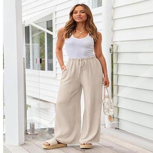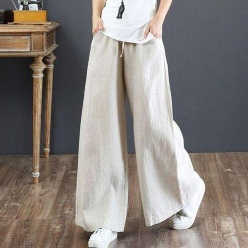 [에이치플러스몰]여성 4컬러 여름 허리밴딩 린넨 와이드팬츠 마바지