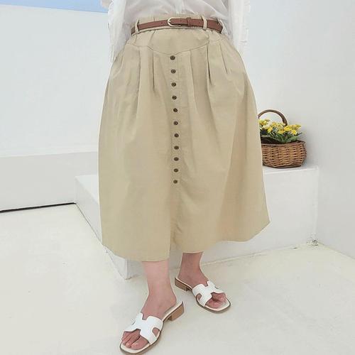 [퍼니걸스]2043 밴딩 코튼 A라인 포켓 롱 스커트 벨트세트 여성의류