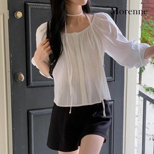 [모어렌][모어렌] [모어렌]비헤나 투웨이 스트랩 밴딩 블라우스 [tbs0496]