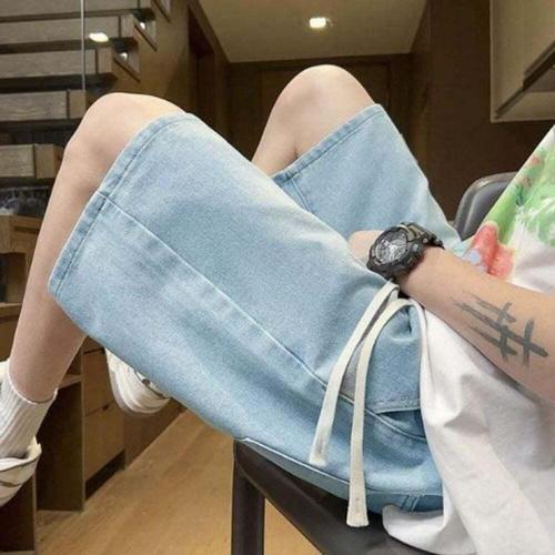 스트릿 루즈핏 하프팬츠 허리밴딩 여름 청반바지 끈포인트남자스판청 패션 밴바지 캐주얼데님 남자청 남성