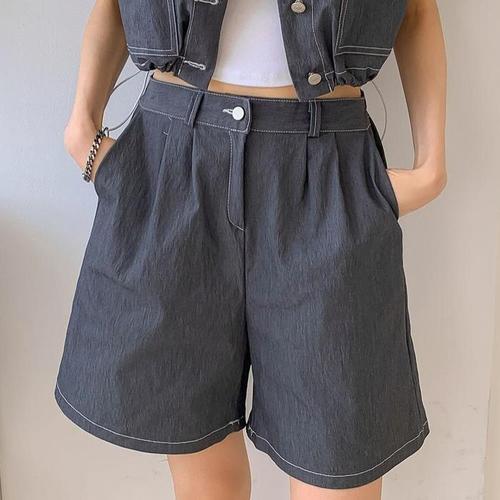 투버튼 여성 데님 반바지 밴딩 청반바지 청반바지 캐주얼바지 밴딩팬츠