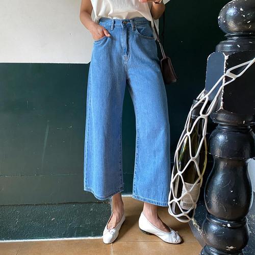 여자 와이드핏 백밴딩 클래식 9부 데님