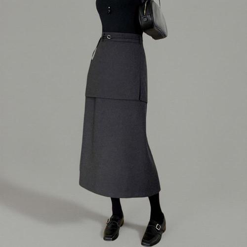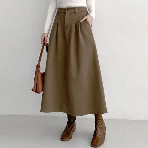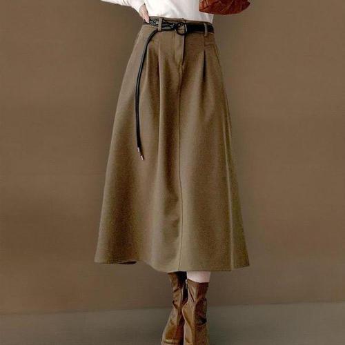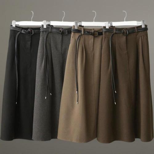 [신상오픈런]여성용 겨울 모직 벨트 A라인 롱 스커트