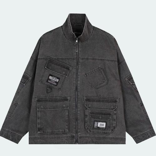 [버커루]남성 오바핏 피그먼 트 포켓 하이넥 데님 점퍼_US