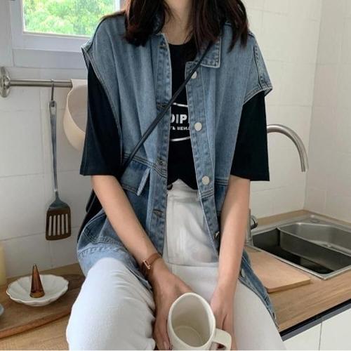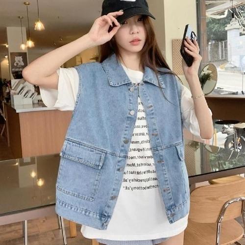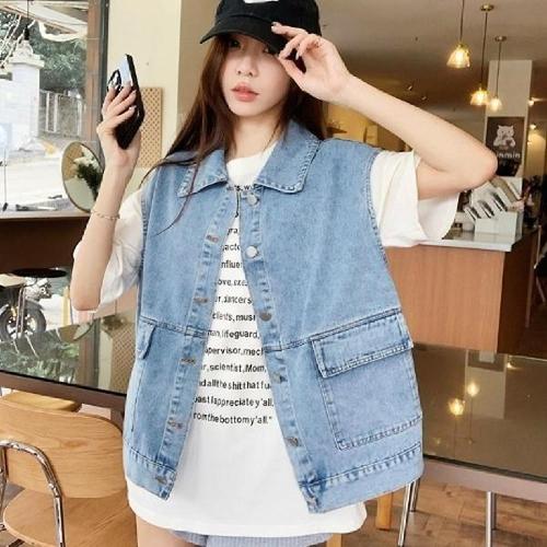 [엄지척]여성 청조끼 데님 베스트 오버핏 여성 봄 캐주얼 자켓_20388468_667501
