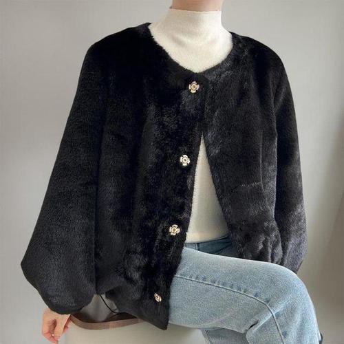 [다잇템]여성 드로우코드 라운드 단추 벌룬 인조퍼 재킷