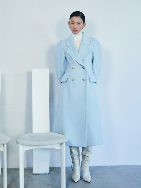[하나보] 하나보 벌룬 소매 볼륨 더블브레스트 코트_라이트블루