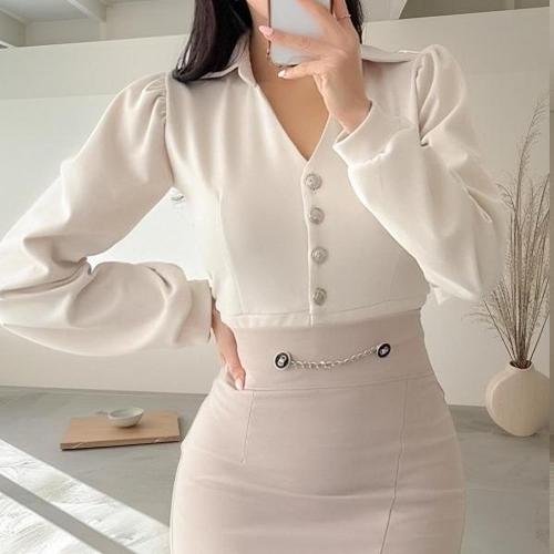 티티웍스 봄가을 카라넥 럭셔리 랜턴 슬리브 무지 벌룬 긴팔 셔츠 블라우스 오피스룩 출근룩 하객룩 정장룩