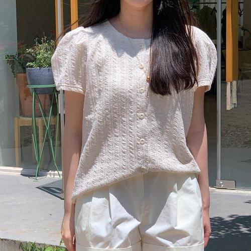[다잇템]여자 벌룬 큰사이즈 패턴 라운드 반소매 가디건 (16188556A)