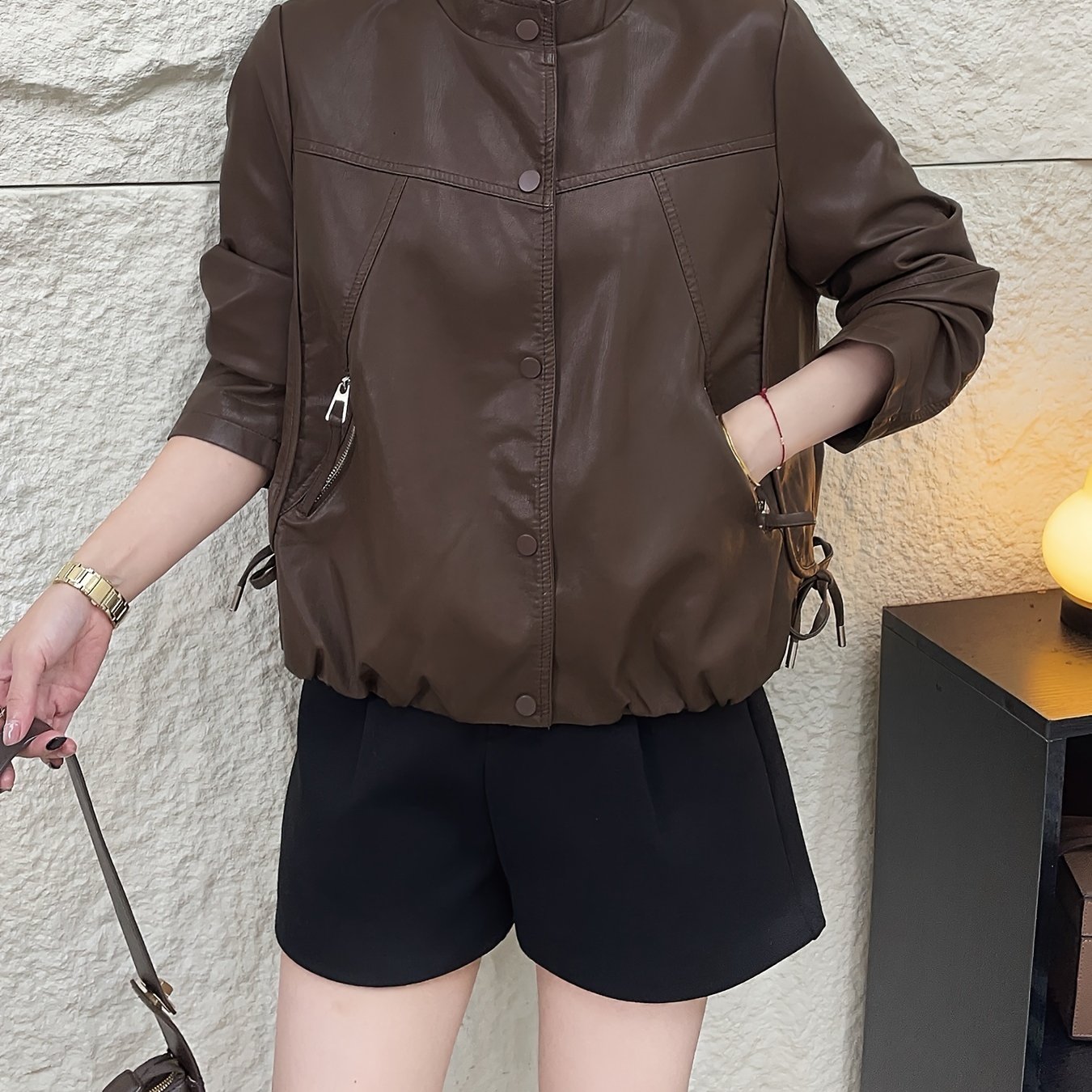 TEMU 플러스 사이즈 - 플러스 사이즈 - 숏 인조 가죽 재킷 여성용 2026 봄/가을 신상 한국 버전 루즈핏 외국 스타일 다용도 재킷 탑