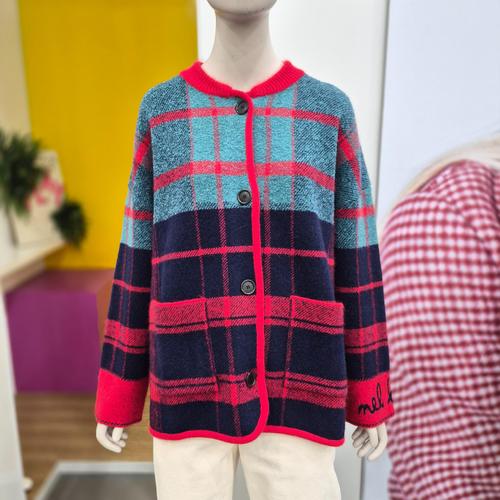 [베네통]베네통 체크 자카드 니트가디건 BAKCA8561 RD