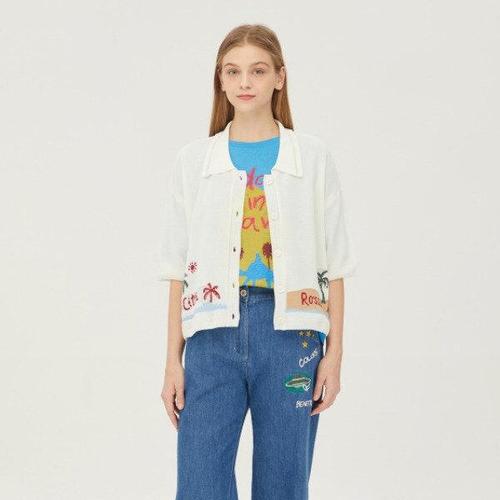 베네통/애플아울렛/강아지 자수 브이넥 숏 가디건/BAKCA8461