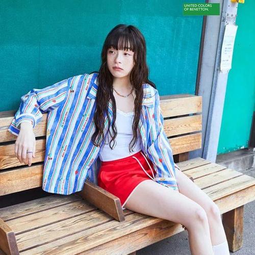 [베네통]스트라이프 레터링 블라우스 (BABL90631)