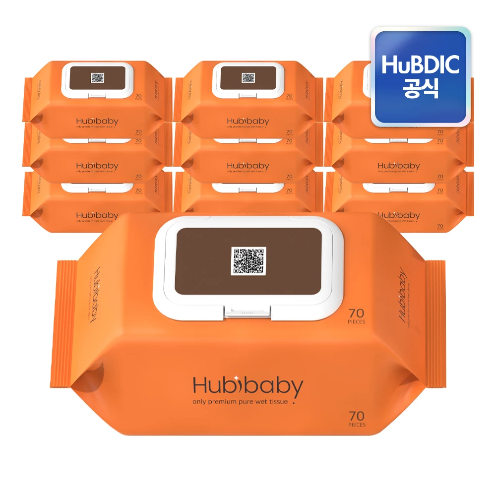 [휴비베이비] 한국생산 도톰한 ONLY 프리미엄 무자극 아기 물티슈 영유아 대용량 캡형 70매 10팩