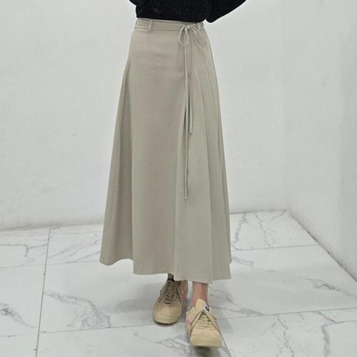 [샵앤][샵앤] 여성 리본타이 언발 옆핀턱 뒷밴딩 A라인 롱 스커트 SIU-WSK-4814-베이지