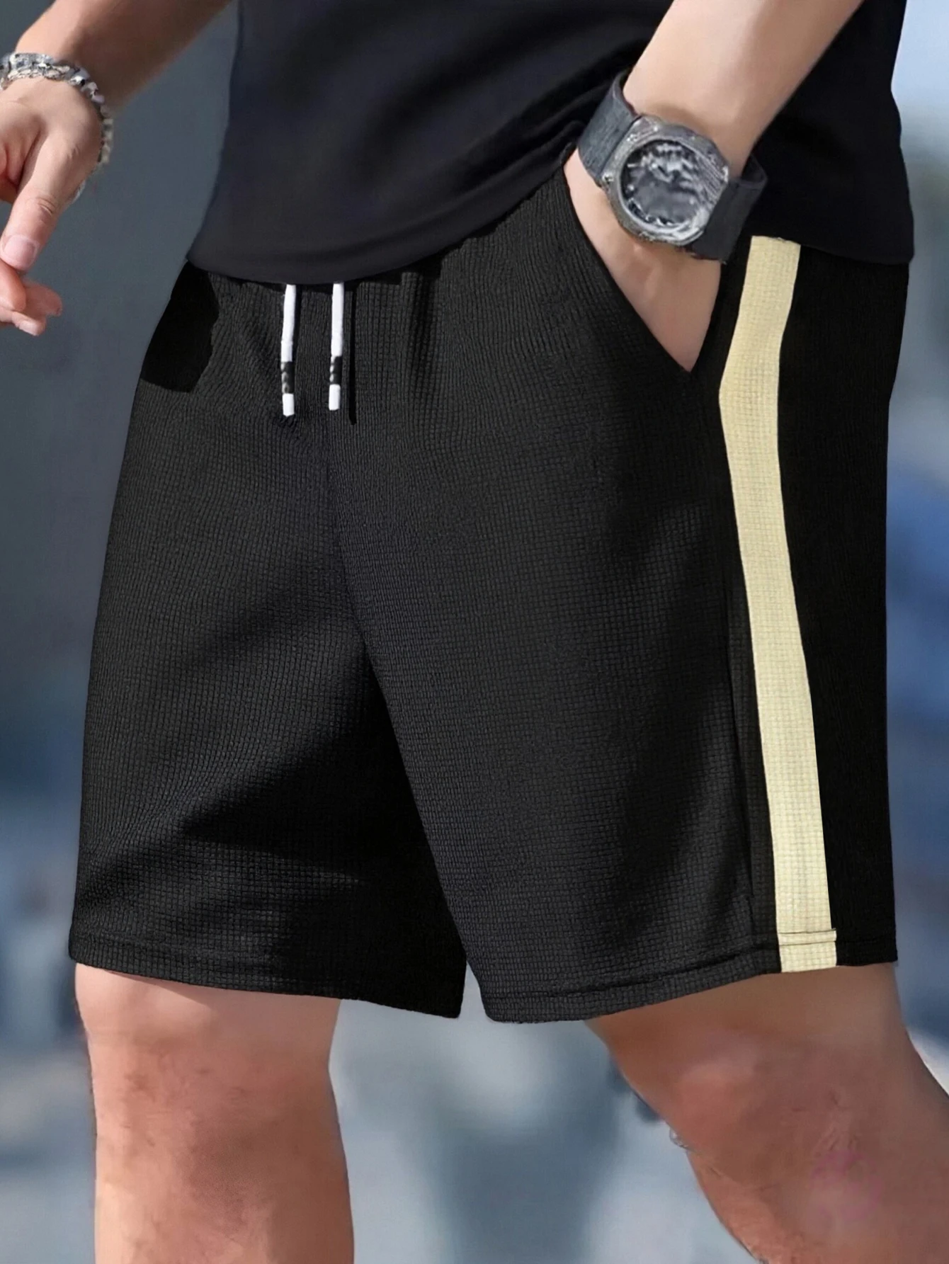 TEMU 여름 남성 캐주얼 스포츠 반바지 패션 텍스처 비치 반바지